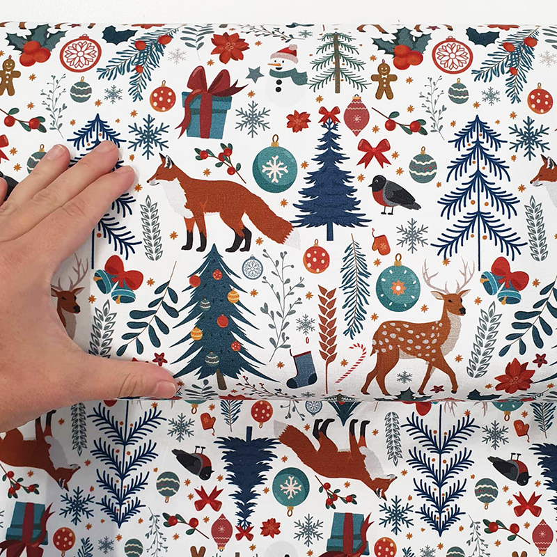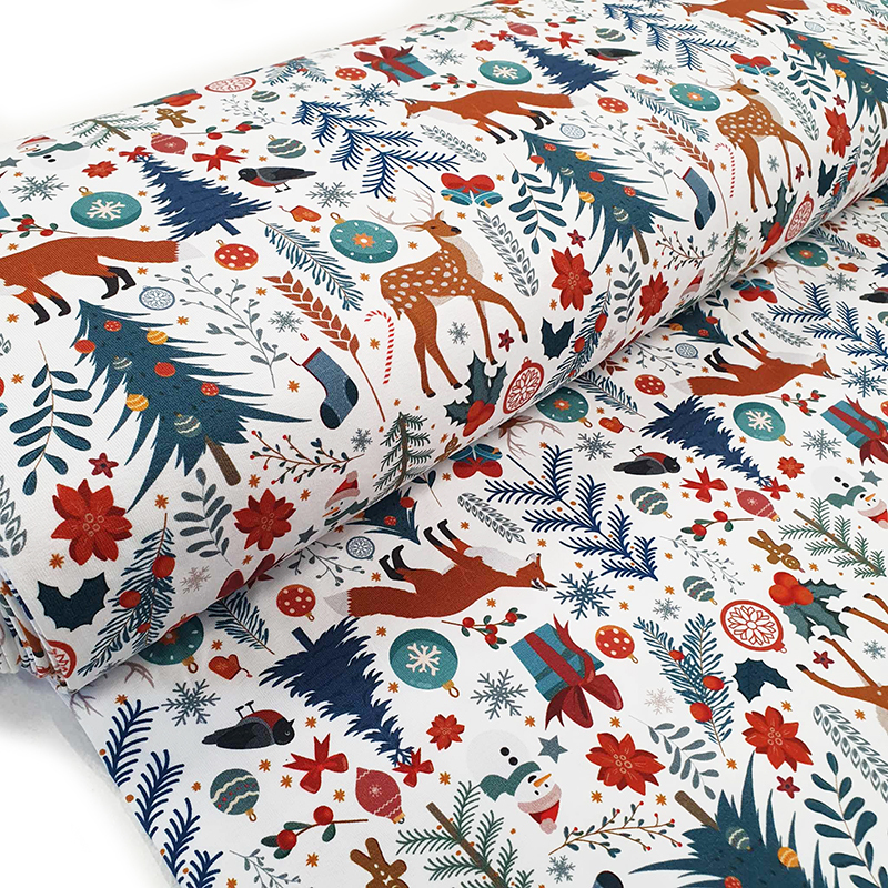 GOTS Luomu Digitrikoo: Joulumetsä, valkoinen